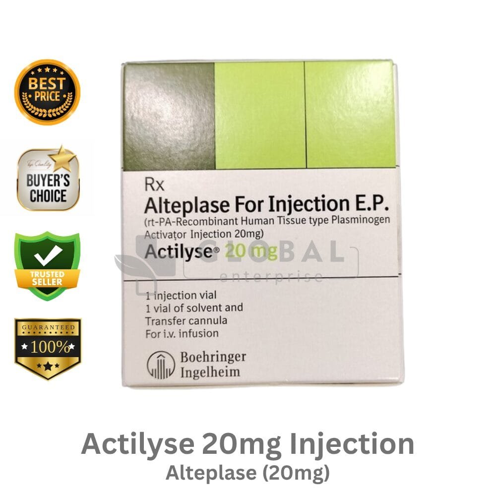 Actilyse 20mg Injection contains Active ingredient as per pack, used for condition-specific therapeutic management as advised by a healthcare professional. Its clinical effectiveness depends on correct dosing, adherence, and supervision.