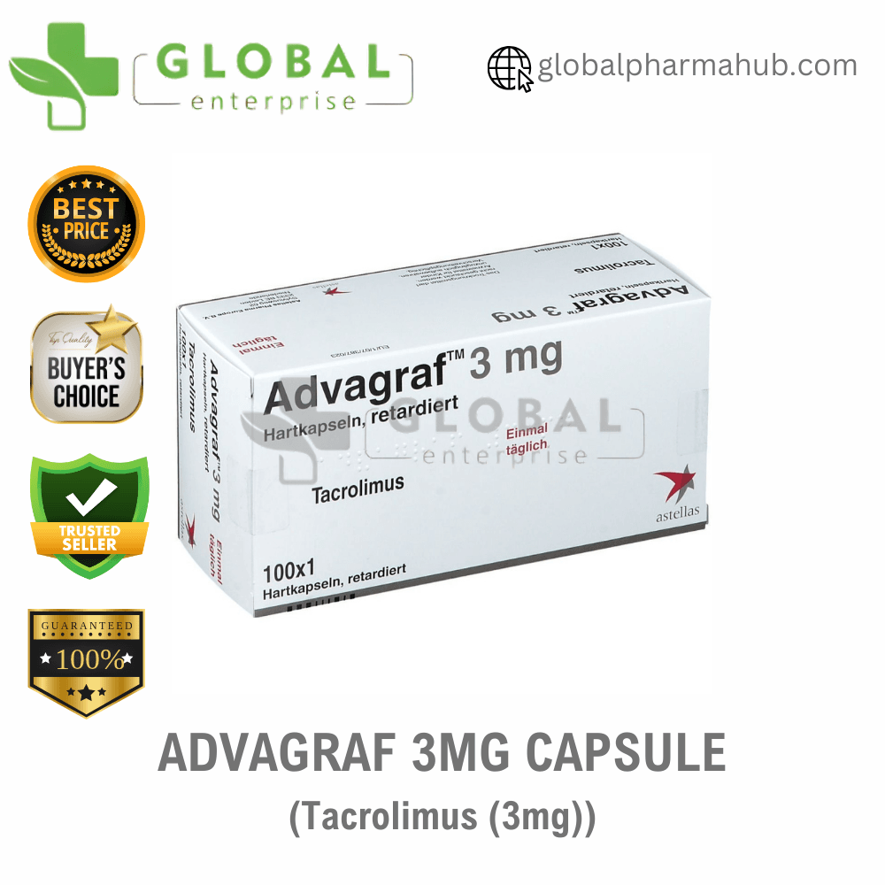 Active Ingredient- Tacrolimus 3mg Name- Advagraf 3Mg Capsule Manufacturer- Astellas Pharma Inc Dosage Type- Capsule Packing- 10.0 capsule pr in 1 strip