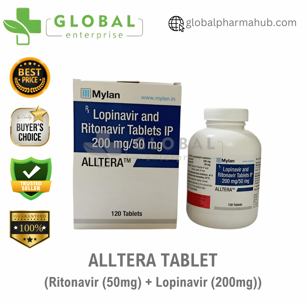 Active Ingredient- Ritonavir 50mg + Lopinavir 200mg Name- Alltera Tablet Manufacturer – Mylan Pharmaceuticals Pvt Ltd Dosage Type- Tablet Packing- 120 Tablets in 1 Bottle