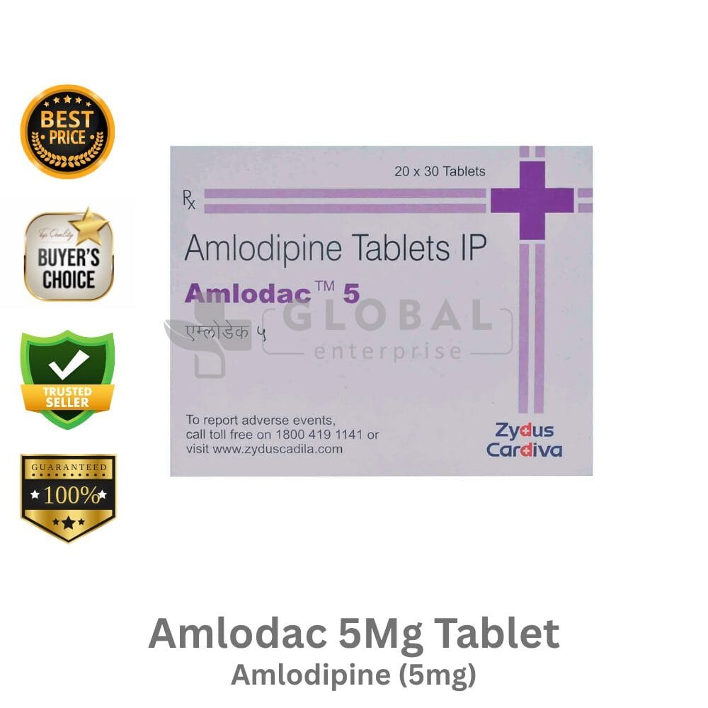Active Ingredient – Amlodipine 5mg Name -Amlodac 5 mg tablet Manufacturer- Zydus Cadila Dosage Type – Oral Tablet Packing- Strip of 30 Tablets