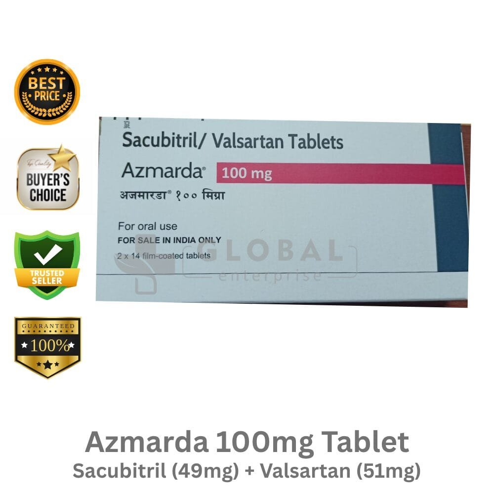 Active Ingredient -Sacubitril 49mg and Valsartan 51mg Name -Azmarda 100 mg Tablet Manufacturer- J B Chemicals Dosage Type – Oral tablet Packing- Pack of 14 Tablets