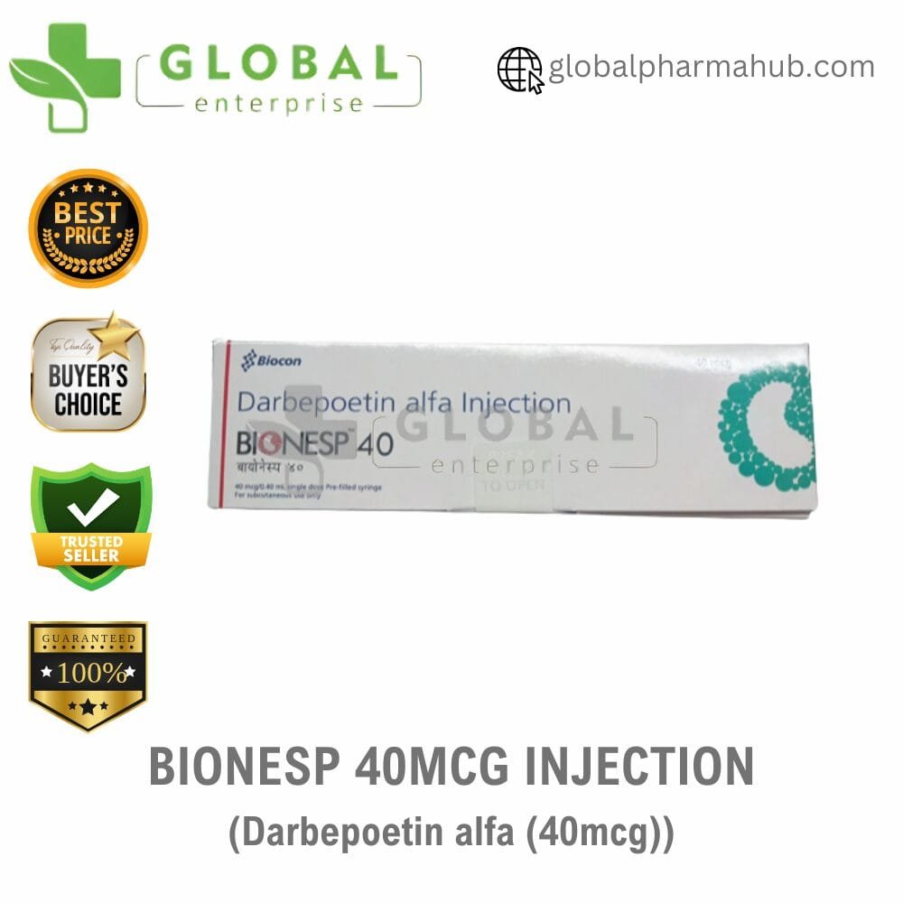 Active Ingredient – Darbepoetin Alfa Name – Bionesp 40mcg Injection Manufacturer – Biocon Ltd. Dosage Type -Injection Packing – 0.4mL In 1 Vial