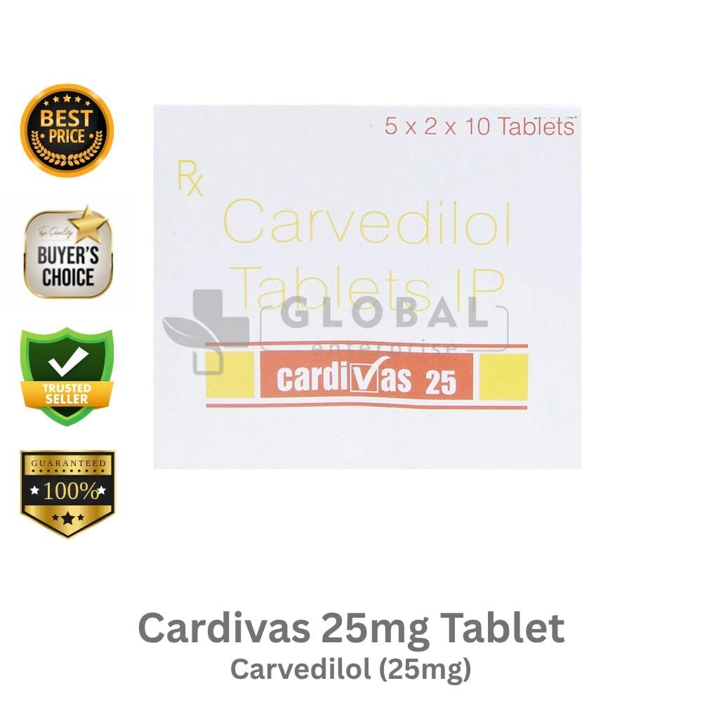 Cardivas 25mg Tablet contains Active ingredient as per pack, used for condition-specific therapeutic management as advised by a healthcare professional. Its clinical effectiveness depends on correct dosing, adherence, and supervision.