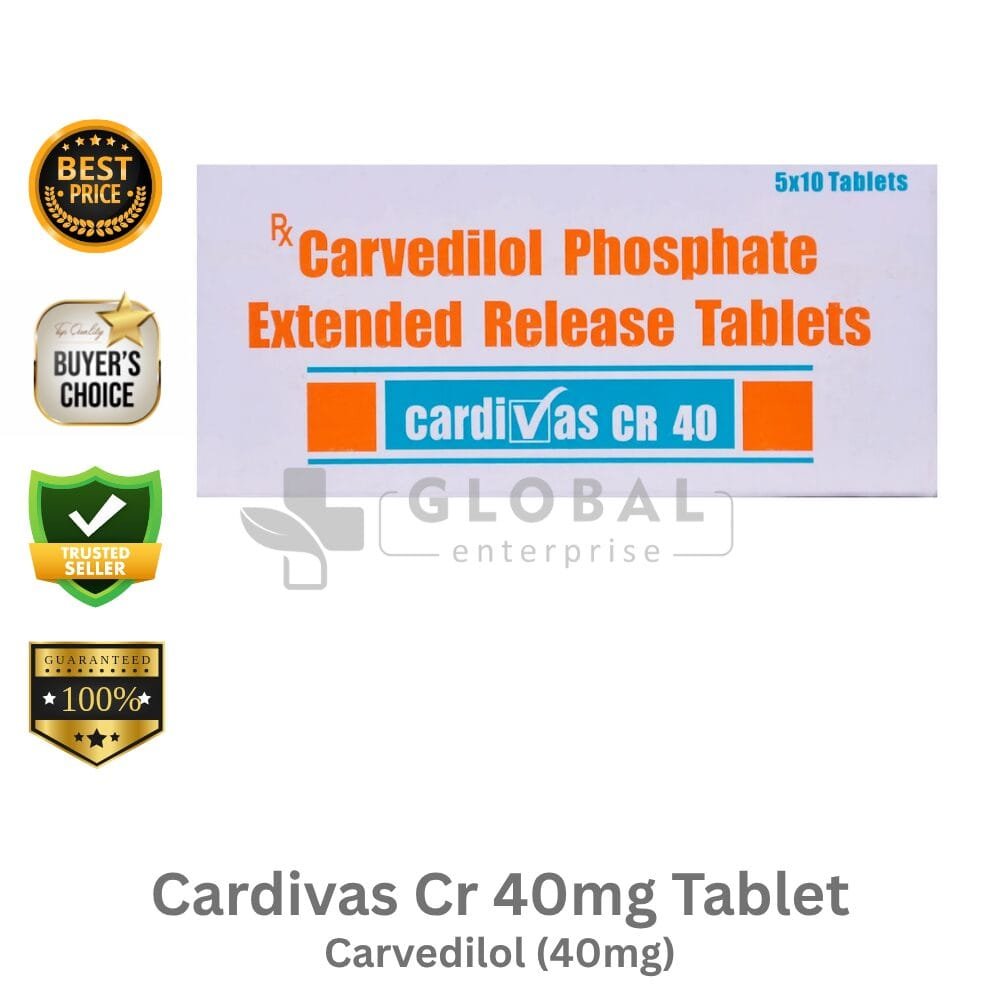 Active Ingredient -Carvedilol 20mg Name -Cardivas CR 40 mg Tablet Manufacturer- Sun Pharmaceutical Industries Ltd. Dosage Type – Tablet Packing- Strips of 10 Tablets