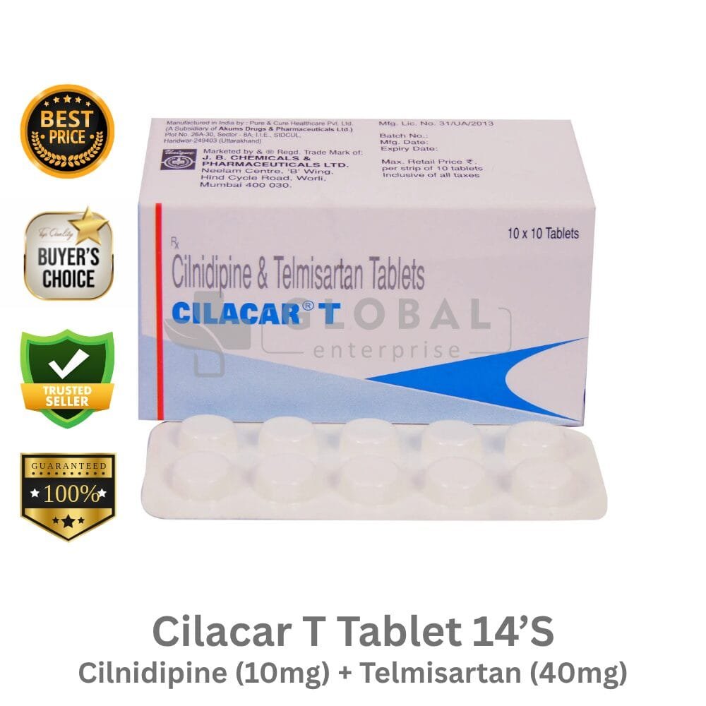 Active Ingredient -Cilnidipine & Telmisartan Name -Cilacar T Tablet 14’s Manufacturer- J B Chemicals Dosage Type – Oral Tablet Packing- Strip of 14 Tablets