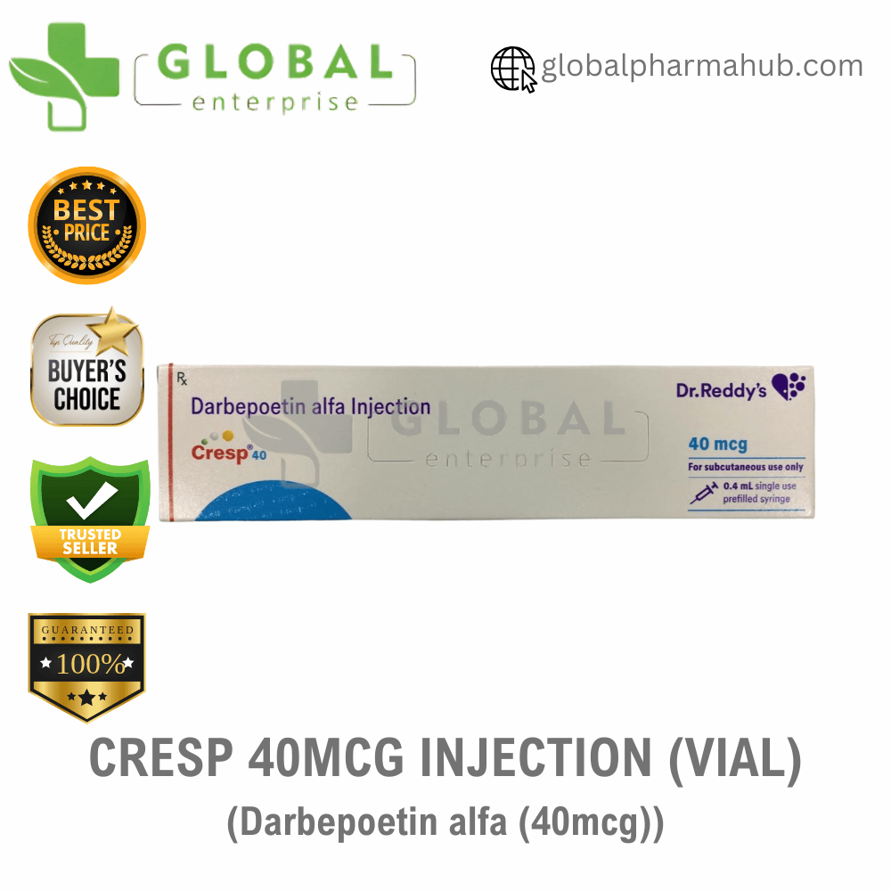 Active Ingredient -Darbepoetin alfa Name – Cresp 40Mcg Injection (Vial) Manufacturer- Dr. Reddy’s Laboratories Ltd. Dosage Type -Injection (Vial) Packing- 40 mcg per 1 ml