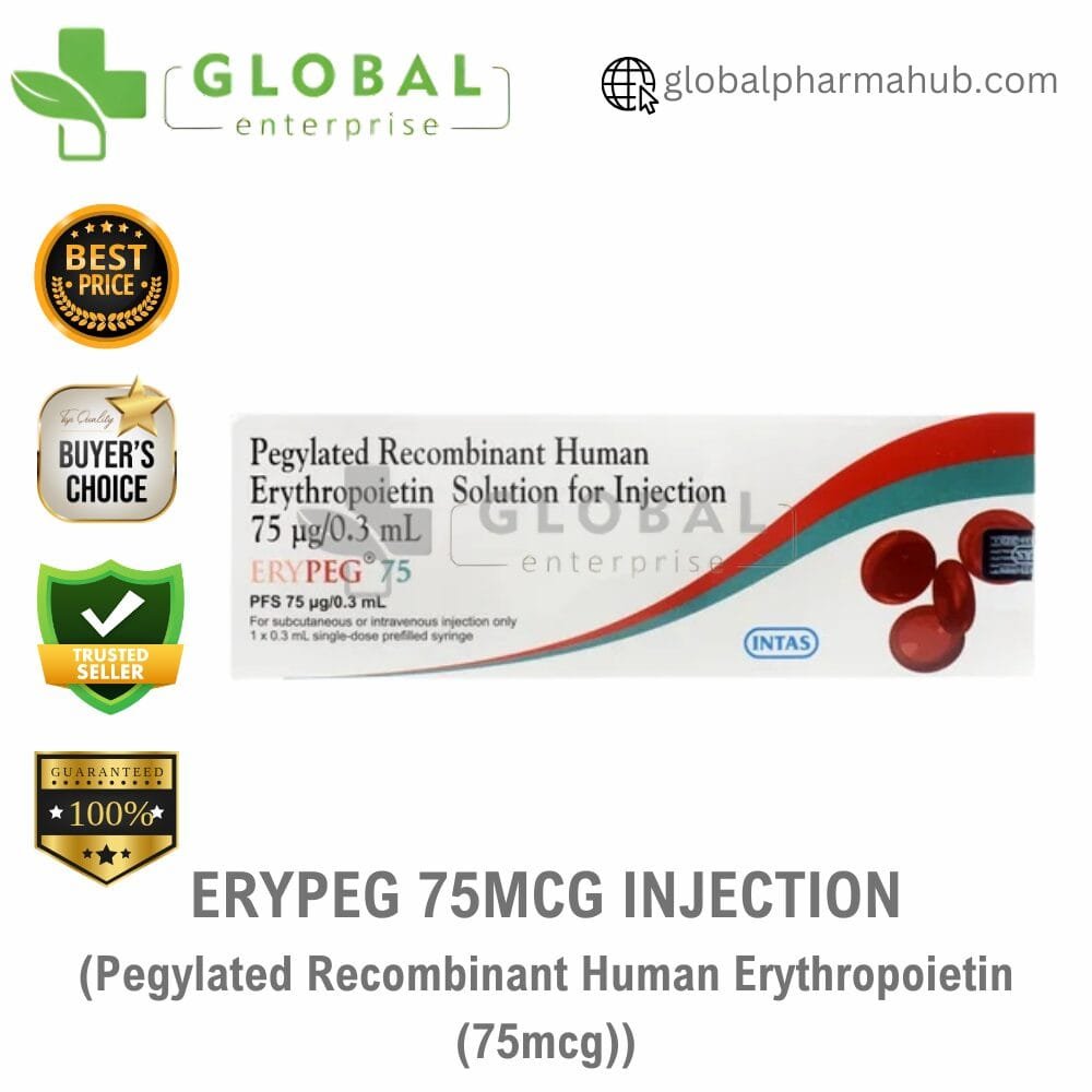 Active Ingredient – Recombinant Human Erythropoietin Alfa Name – Erypeg 75mcg Injection Manufacturer – Intas Pharmaceuticals Ltd. Dosage Type – Injection Packing – 0.3 ml in 1 Vial