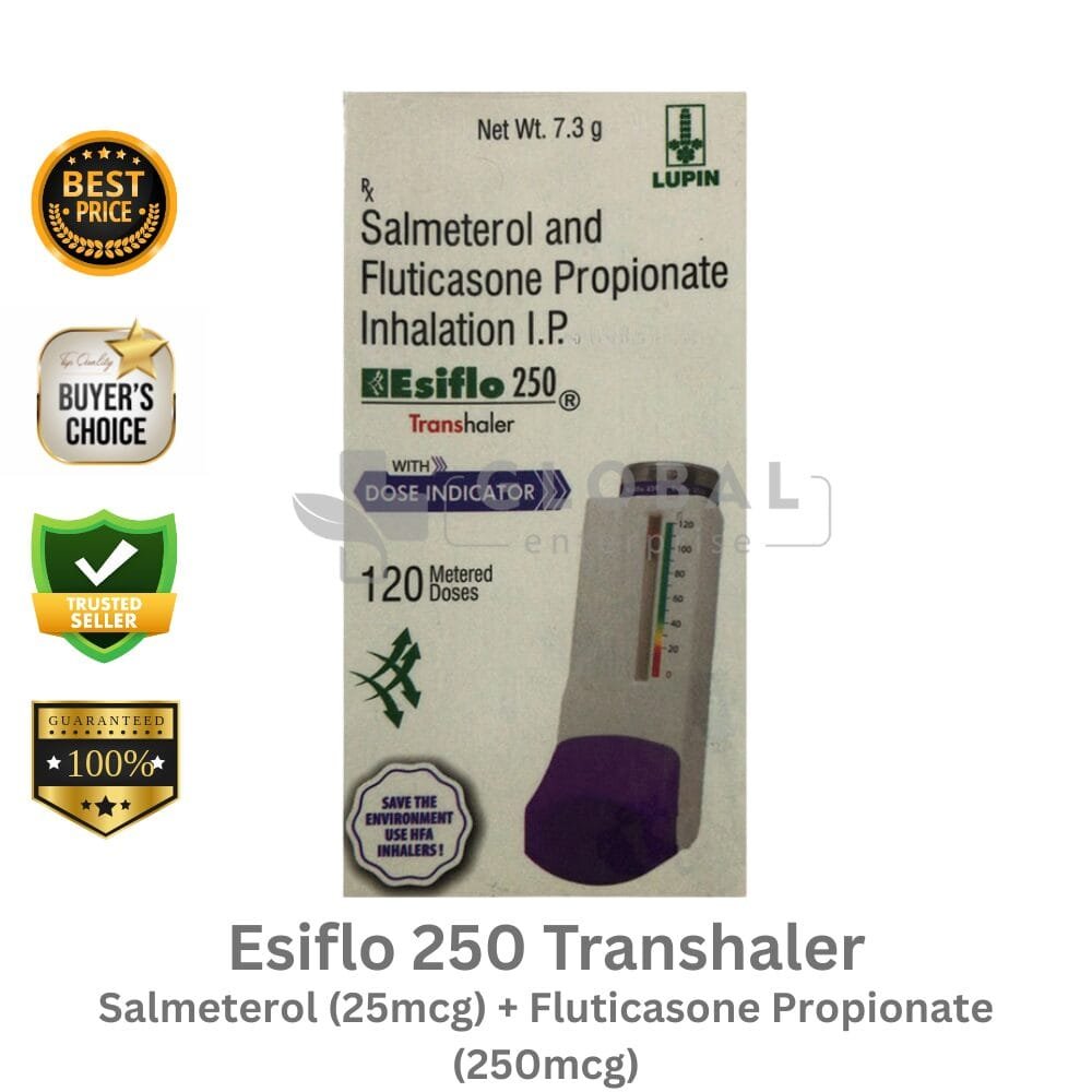 Active Ingredient – Fluticasone Propionate and Salmeterol Name – Esiflo 250 Transhaler Manufacturer– Glenmark Pharmaceuticals Ltd Dosage Type – Metered-Dose Inhaler Packing– 1 Inhaler With ~120 Metered