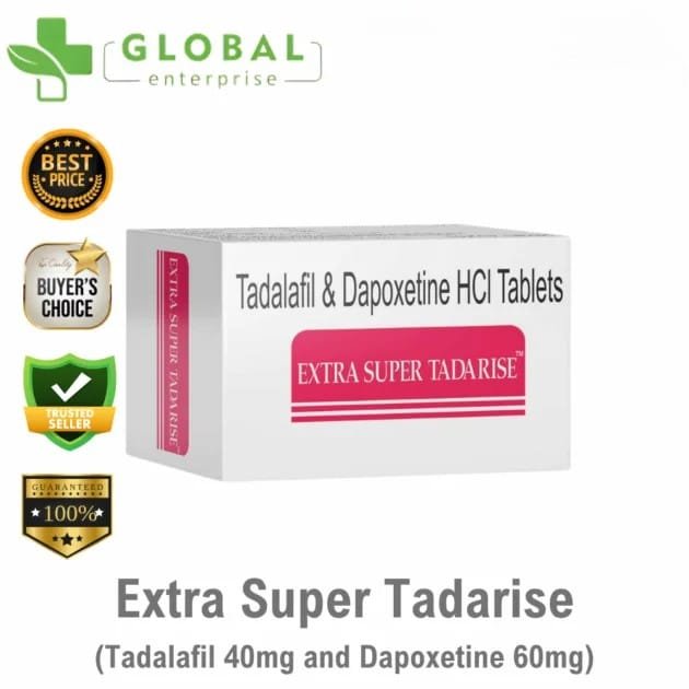 Extra Super Tadarise contains Tadalafil 40mg and Dapoxetine 60mg, formulated for men suffering from both erectile dysfunction (ED) and premature ejaculation (PE). Tadalafil improves penile blood flow to achieve a firm and lasting erection, while Dapoxetine helps delay ejaculation and improve control during sexual intercourse.