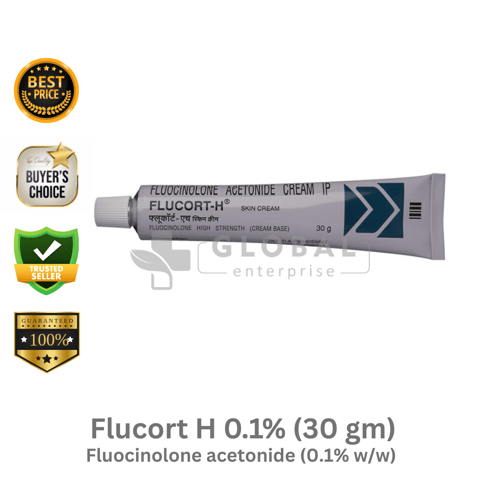 Active Ingredient – Fluocinolone acetonide Name – Flucort H 0.1% (30gm) Manufacturer– Glenmark Pharmaceuticals Ltd Dosage Type – Topical Cream Packing– Tube 30g
