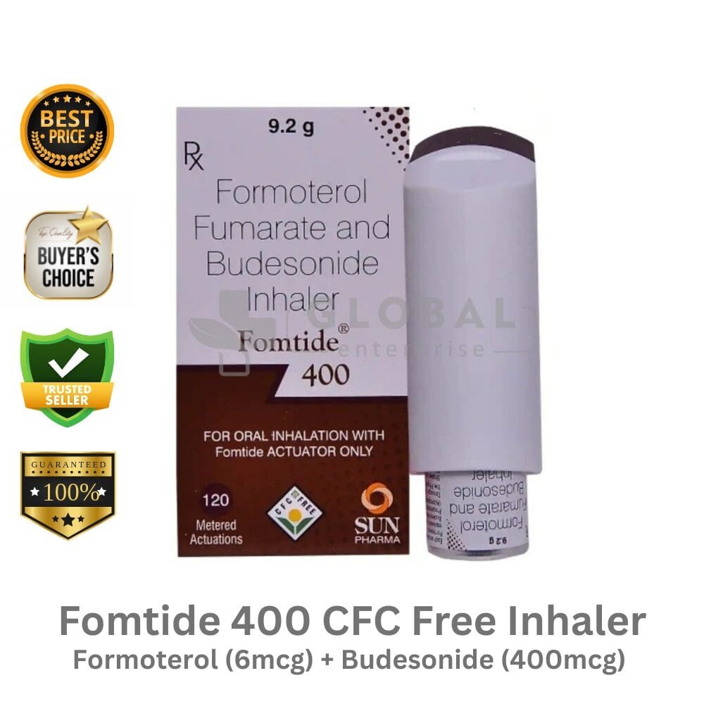 Active Ingredient – Formoterol 6mcg and Budesonide 400mcg Name – Fomtide 400 CFC Free Inhaler Manufacturer– Sun Pharmaceutical Industries Ltd Dosage Type – Metered‑Dose Inhaler Packing– 1 Inhaler With ~120 Metered