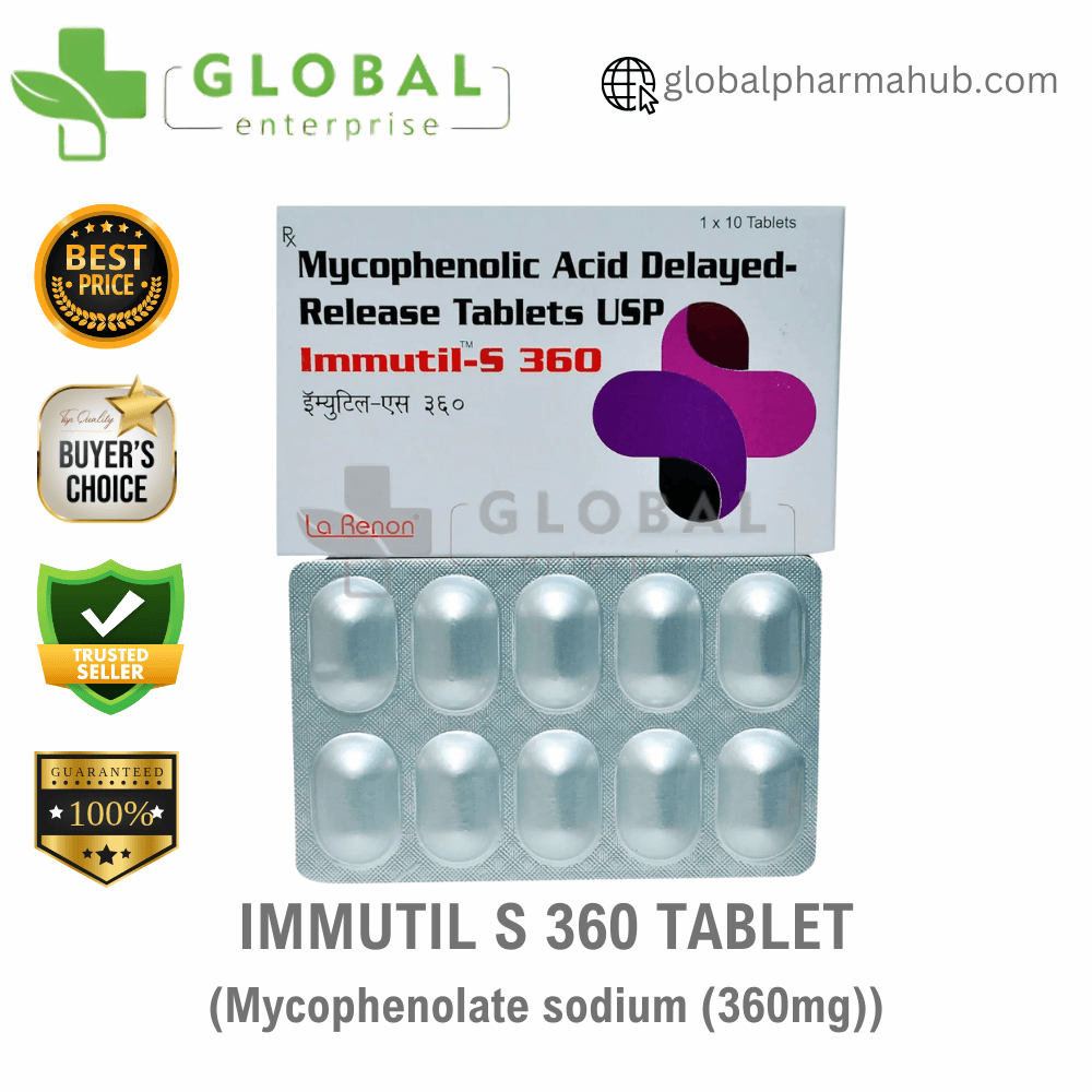 Active Ingredient- Mycophenolate sodium 360mg Name- Immutil S 360 Tablet Manufacturer- La Renon Healthcare Pvt Ltd Dosage Type- Tablet Packing- 10.0 Tablet DR in 1 strip