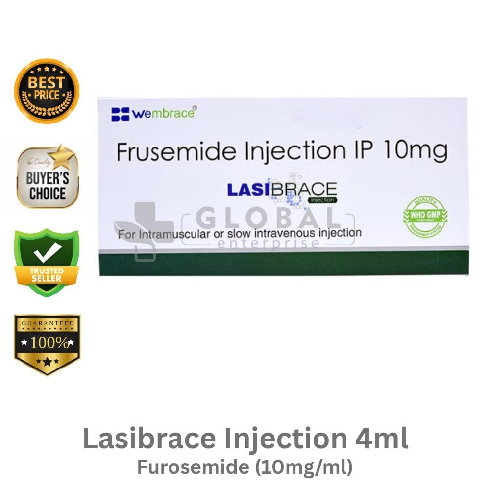 Active Ingredient -Furosemide 10mg Name -Lasibrace Injection 4 mL Manufacturer- Wembrace Biopharma Pvt. Ltd Dosage Type – Injection Packing- Ampoule of 4mL
