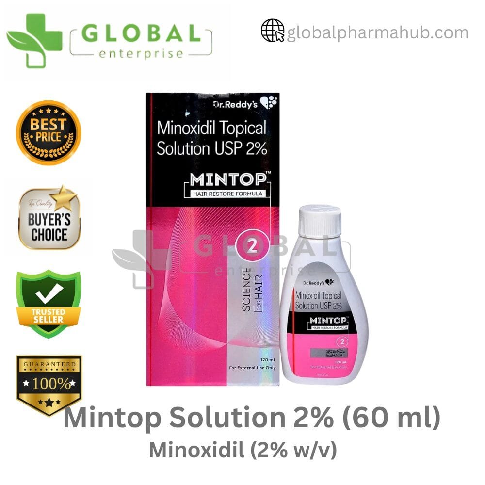 MINtop Forte 2% Hair Regrowth Formula contains Minoxidil 2%, a topical vasodilator used in men to treat common hereditary hair loss. It improves blood flow to hair follicles on the scalp, helping slow further thinning and encouraging new hair growth when used regularly.