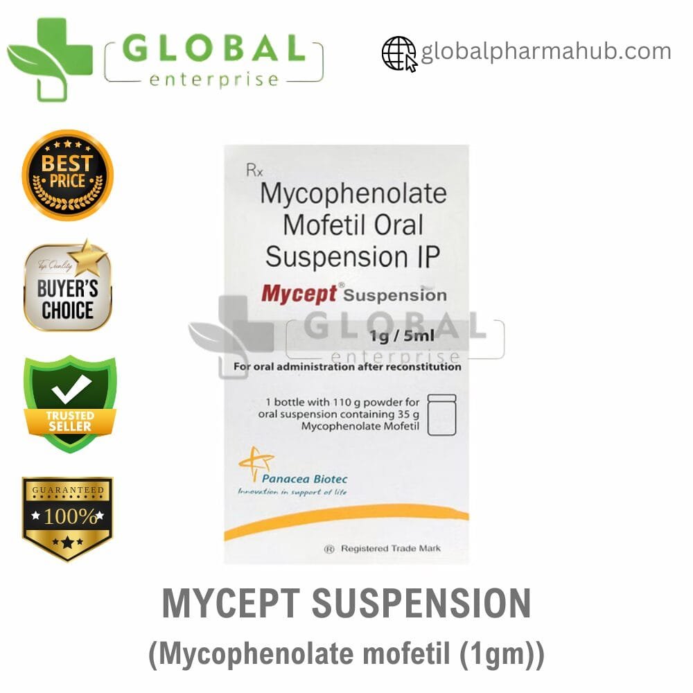 Active Ingredient- Mycophenolate mofetil 1gm Name- Mycept Suspension Manufacturer- ManKind Pharma Ltd Dosage Type- Suspension Packing- 1 Bottle