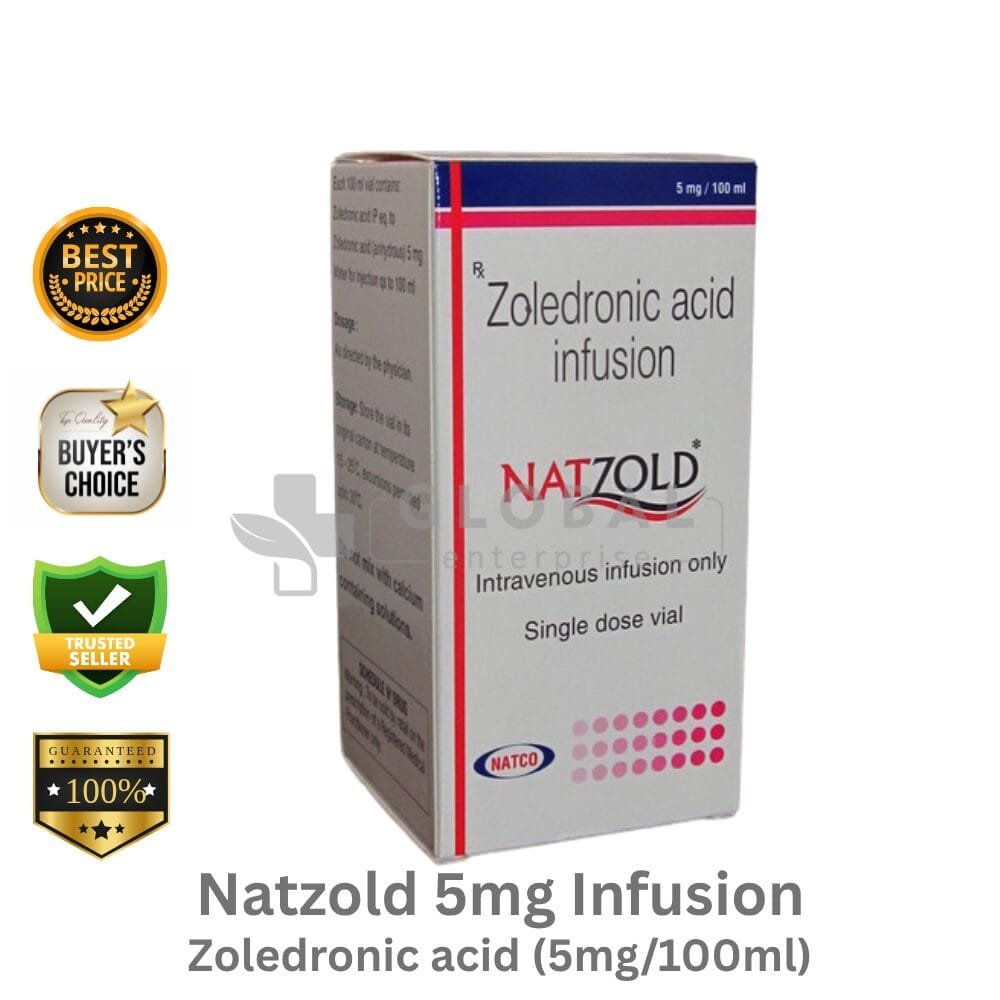 Active Ingredient – Zoledronic Acid 5mg Name – Natzold 5Mg Infusion Manufacturer- Natco Pharma Ltd. Dosage Type – Infusion Packing- 100mL Vial