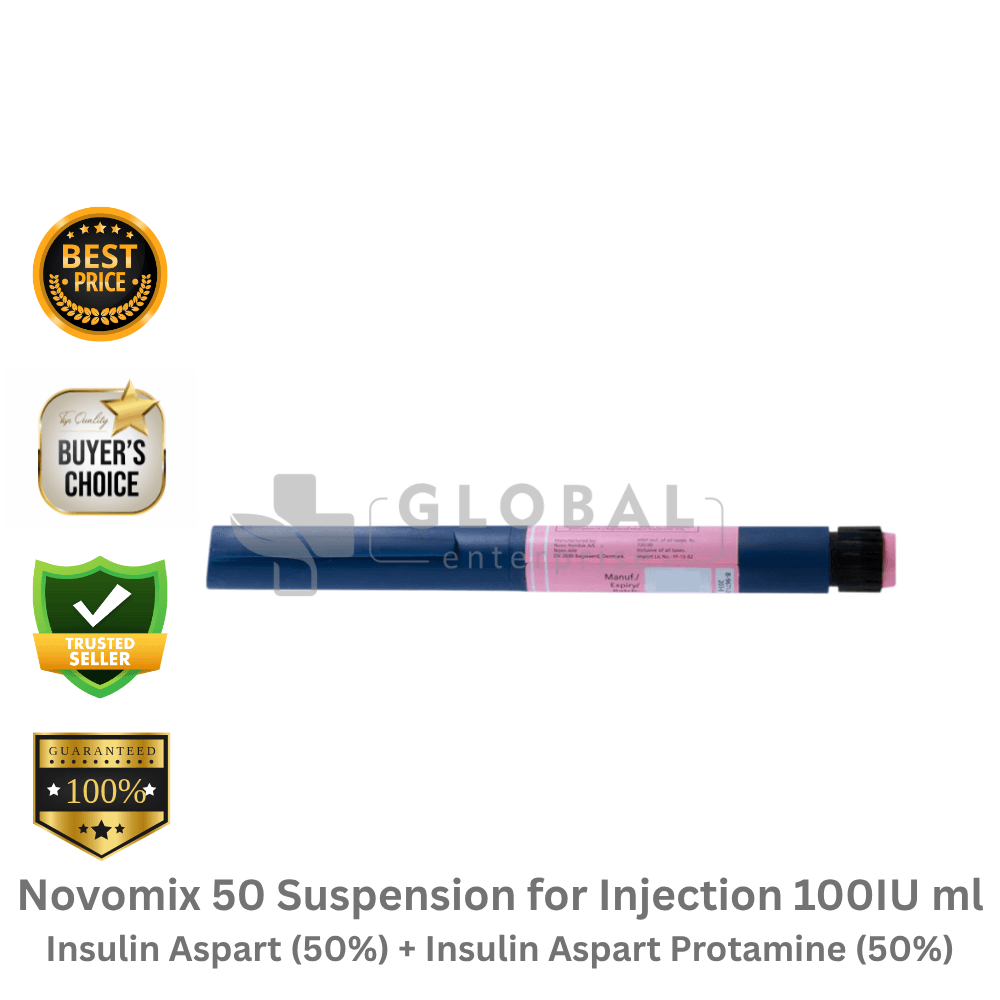 Novomix 50 Suspension for Injection 100IU ml contains Insulin Aspart (50%) and Insulin Aspart Protamine (50%)