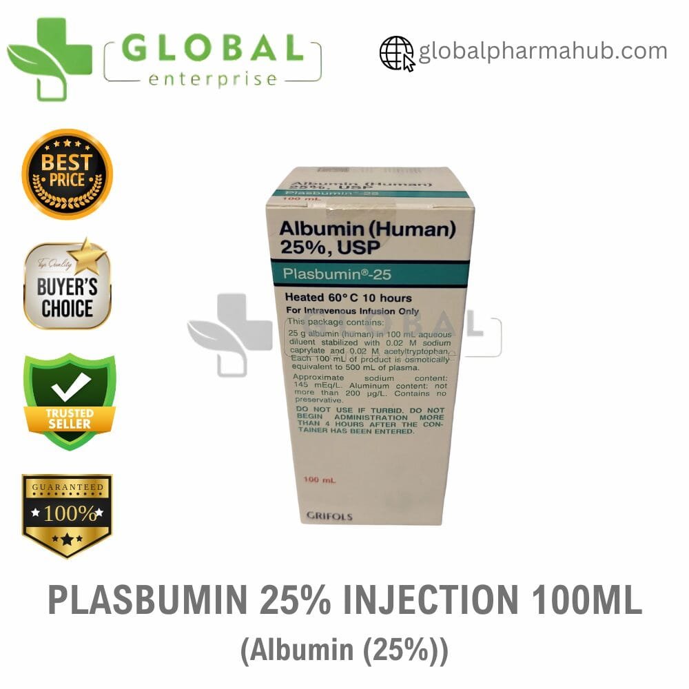 Active Ingredient – Human Albumin 25% Name – Plasbumin 25% Injection 100 ml Manufacturer – Grifols Dosage Type – Injection Packing – 100 mL 1 Vial