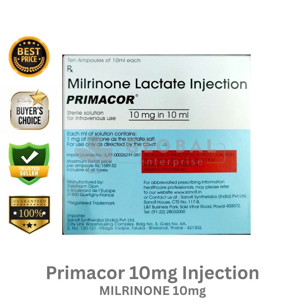 Active Ingredient – Milrinone Name – Primacor 10mg Injection Manufacturer- Sanofi Aventis Dosage Type – Injection Packing- 1 Ampoule(s) Of 10ml