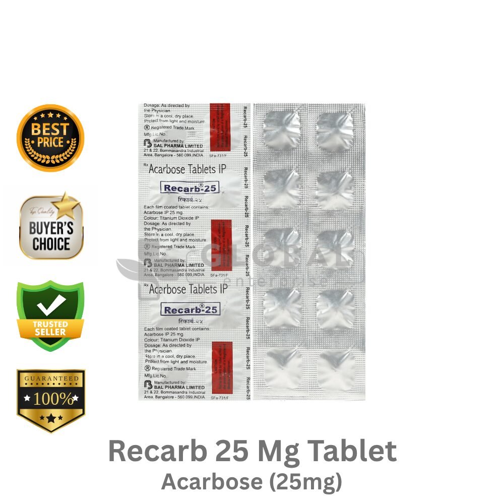 Active Ingredient – Acarbose 25mg Name – Recarb 25 Mg Tablet Manufacturer- Bal Pharma Ltd Dosage Type – Tablet Packing- Strip of 10 Tablets