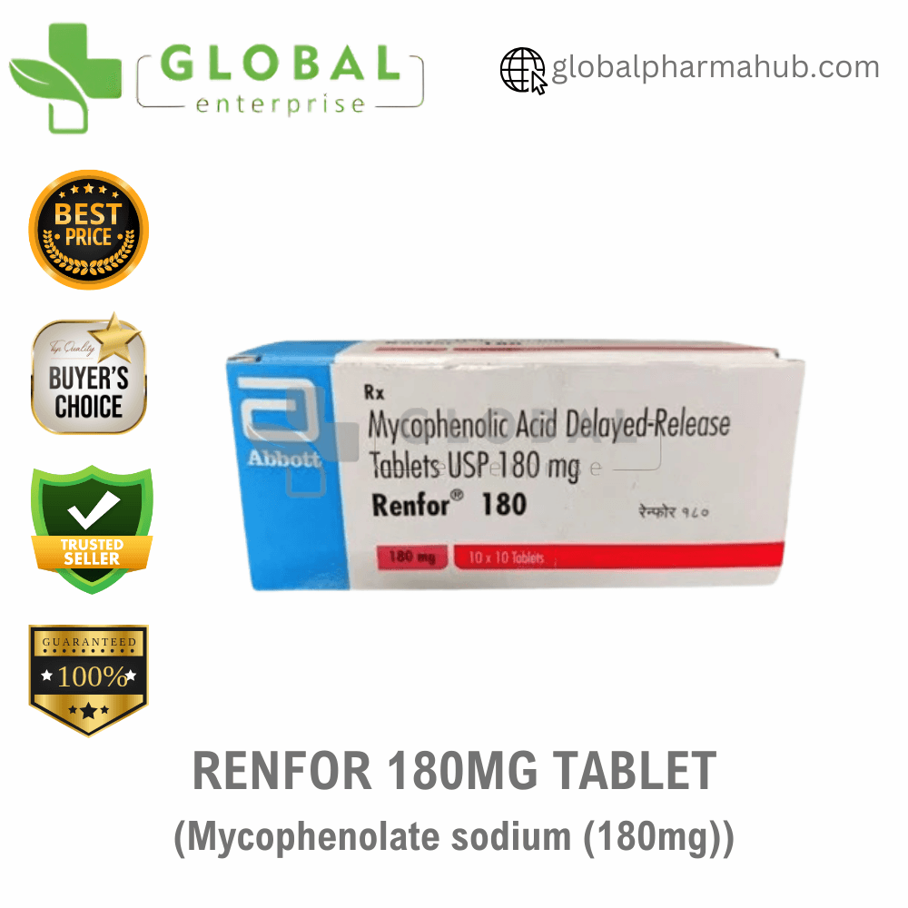 Active Ingredient- Mycophenolate sodium 180mg Name- Renfor 180Mg Tablet Manufacturer- Abbott Dosage Type- Tablet Packing- 10.0 tablets in 1 strip