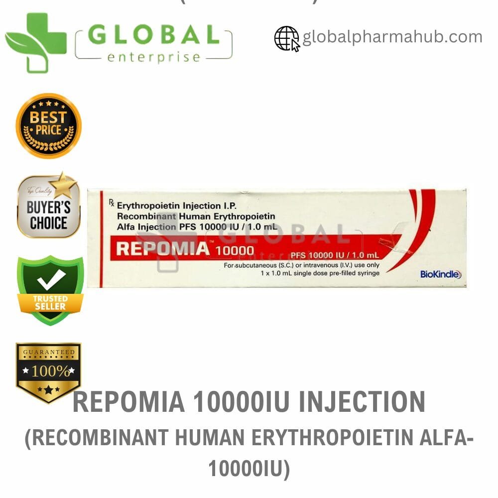 Active Ingredient -Recombinant Human Erythropoietin Alfa Epoietin Alfa Name – Repomia 10000 IU Injection Manufacturer – Biokindle Life Science Pvt Ltd Dosage Type – Injection Packing – 1ml In 1 Vial