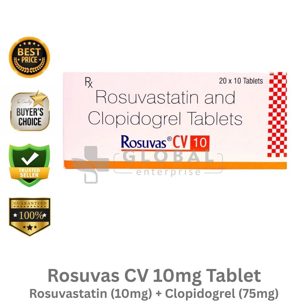 Rosuvas CV 10mg Tablet contains Active ingredient as per pack, used for condition-specific therapeutic management as advised by a healthcare professional. Its clinical effectiveness depends on correct dosing, adherence, and supervision.