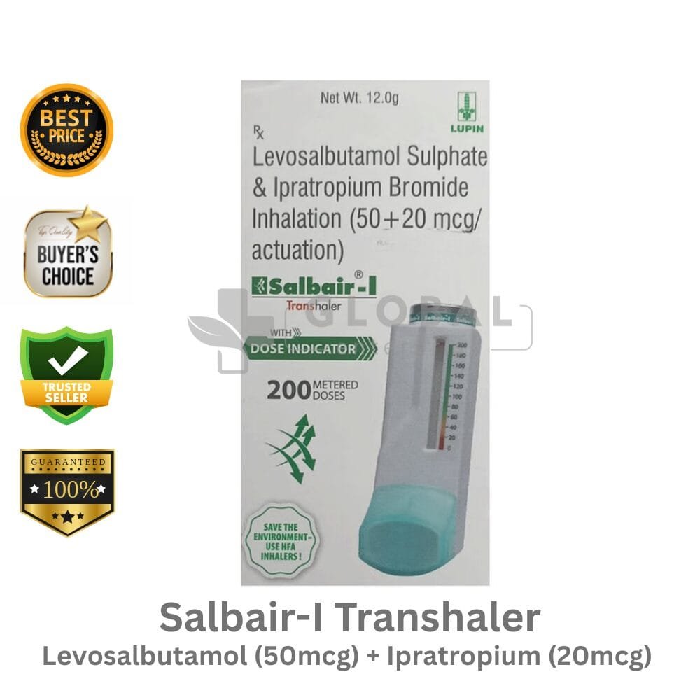 Active Ingredient – Levosalbutamol 50mcg and Ipratropium Bromide 20mcg Name – Salbair-I Transhaler Manufacturer– Lupin Ltd Dosage Type – Dry Powder Inhaler Packing– 1 Transhaler With ~200 Metered