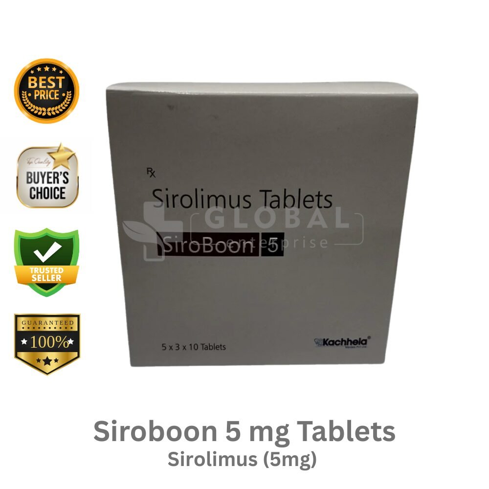Active Ingredient – Sirolimus 5mg Name – SiroBoon 5 mg Tablet Manufacturer – Kachhela Medex Pvt Ltd Dosage Type – Tablet Packing – 10 Tablets In a Strip