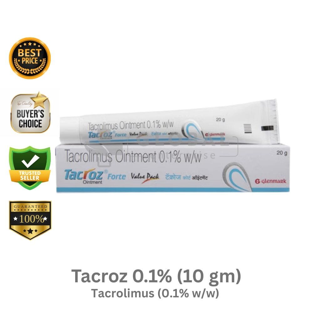 Active Ingredient – Tacrolimus Name – Tacroz 0.1% (10gm) Manufacturer– Glenmark Pharmaceuticals Ltd Dosage Type – Topical Ointment Packing – 1 Tube 10gm