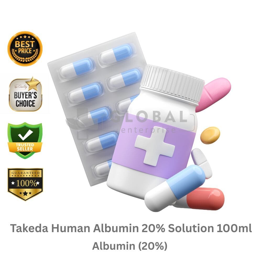 Active Ingredient – Human Albumin Name -Takeda Human Albumin 20% Solution 100 mL Manufacturer – Takeda Pharmaceuticals India Pvt. Ltd. Dosage Type – Sterile Solution Packing – 100mL Vial.