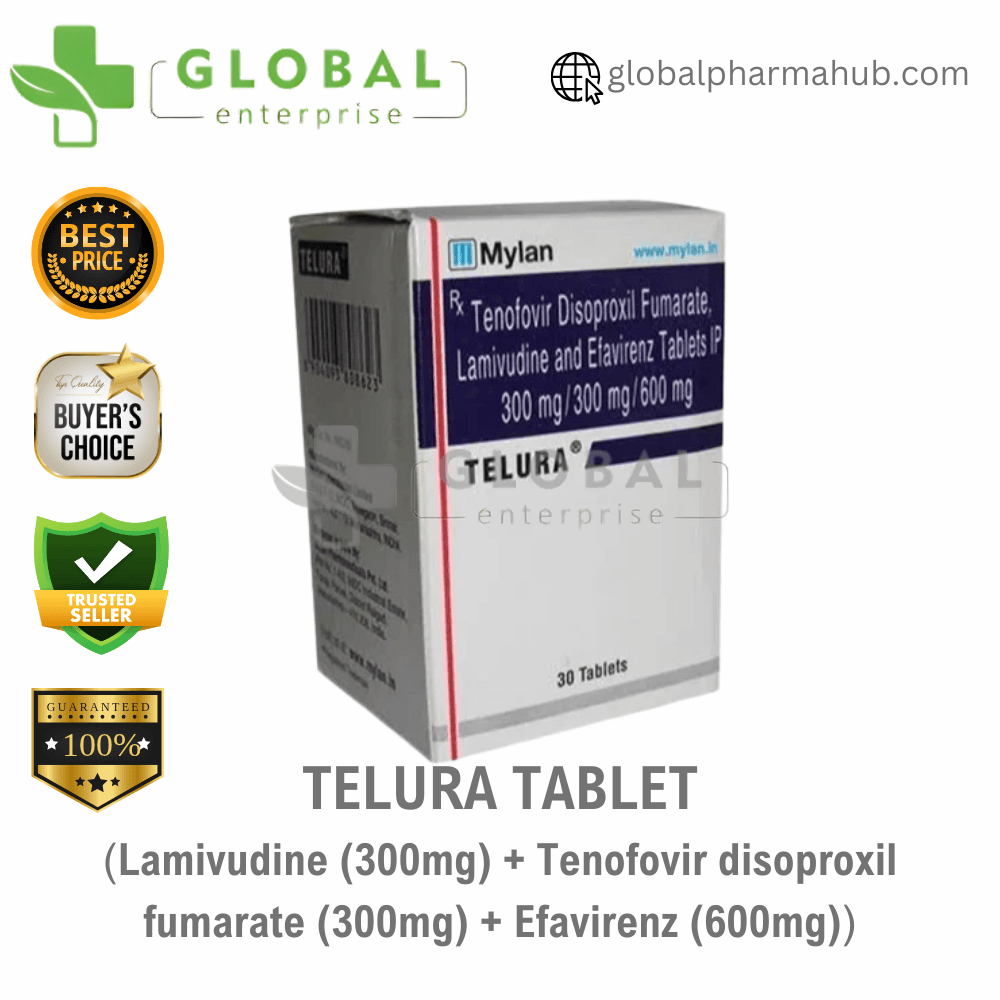 Active Ingredient – Efavirenz Lamivudine Tenofovir Disoproxil Fumarate Name – Telura Tablet Manufacturer- Mylan Pharmaceuticals Pvt. Ltd. Dosage Type – Tablet Packing- 30 Tablets Per Bottle