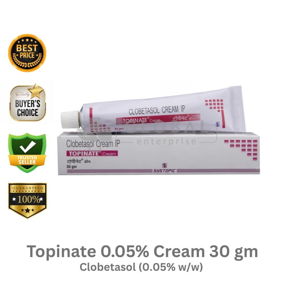 Active Ingredient – Clobetasol Name – Topinate 0.05% Ointment 15gm Manufacturer– Systopic Laboratories Pvt Ltd Dosage Type – Cream Packing– 15gm 1 Tube