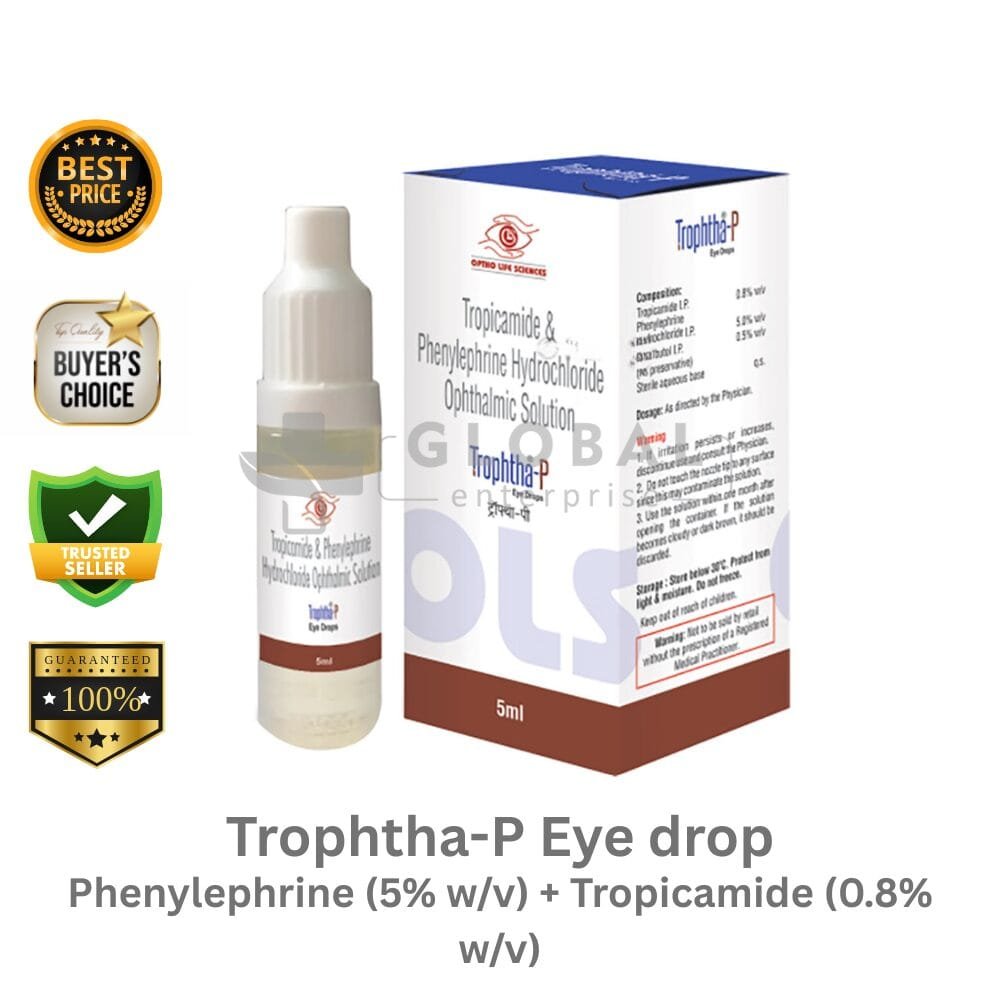 Active Ingredient – Phenylephrine 5% w/v and Tropicamide 0.8% w/v Name – Trophtha-P Eye drop Manufacturer- Optho Life Sciences Pvt Ltd Dosage Type – Ophthalmic Solution Eye Drops Packing- 5ml Bottle.