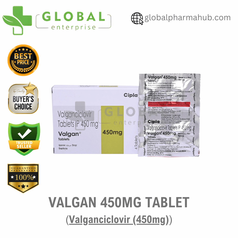 Active Ingredient – Valganciclovir 450mg Name – Valgan 450mg Tablet Manufacturer- Cipla Ltd. Dosage Type – Tablet Packing- 1 Strip of 4 Tablets