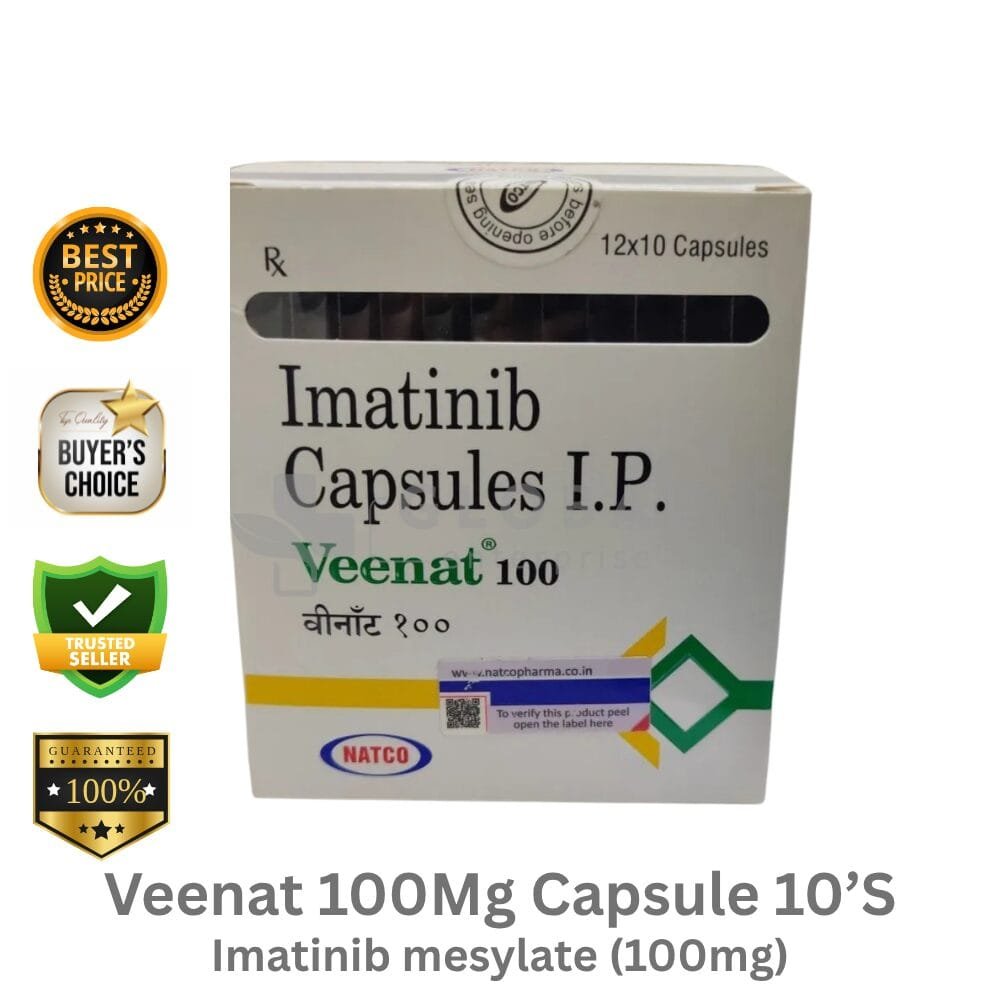 Active Ingredient – Imatinib 100mg Name – Veenat 100Mg Capsule 10’S Manufacturer- Natco Pharma Ltd Dosage Type – Tablet Packing- 10 Capsules In 1 Strip