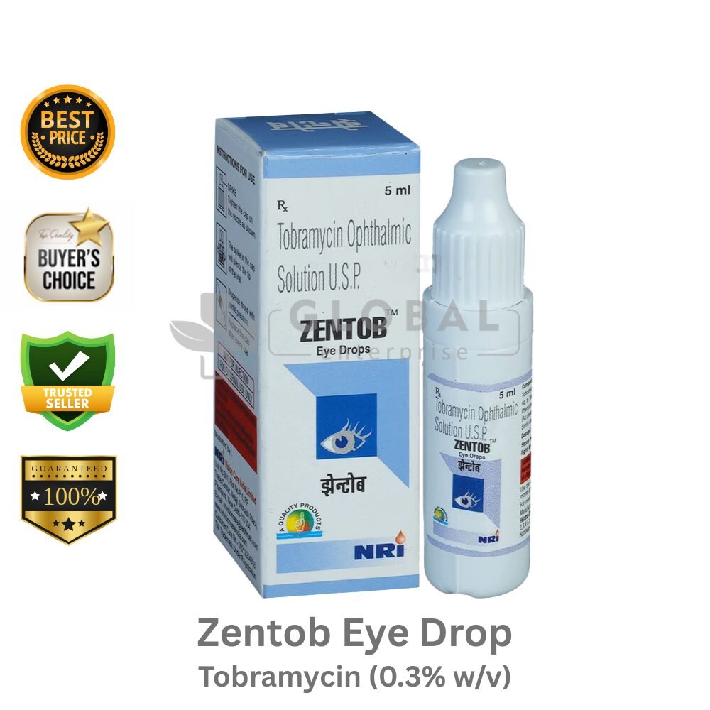 Active Ingredient – Tobramycin 0.3% w/v Name – Zentob Eye Drop Manufacturer- Nri Vision Care India Limited Dosage Type – Ophthalmic Solution Eye Drop Packing- 5ml Dropper Bottle